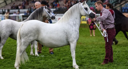 Quick, free and straight from the shoulder. Knees and hocks well flexed with straight and powerful leverage and well under the body.